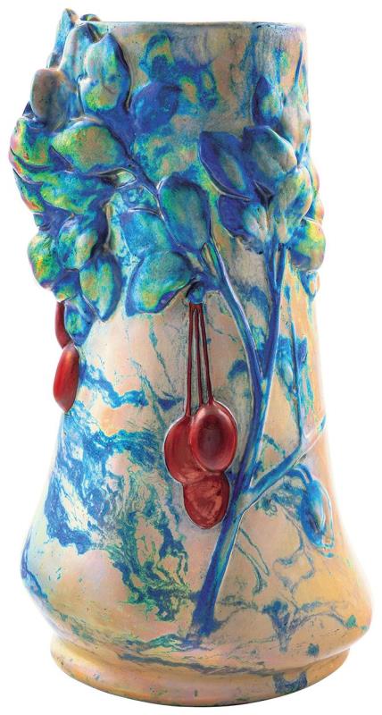 Vase with Relief of Plum-bunches, Zsolnay, around 1930