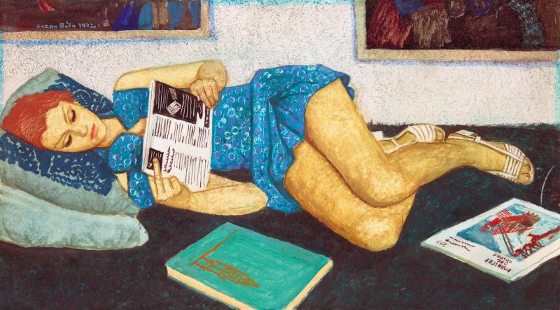 Autograph inscription on the reverse: Czene Béla Olvasó lány