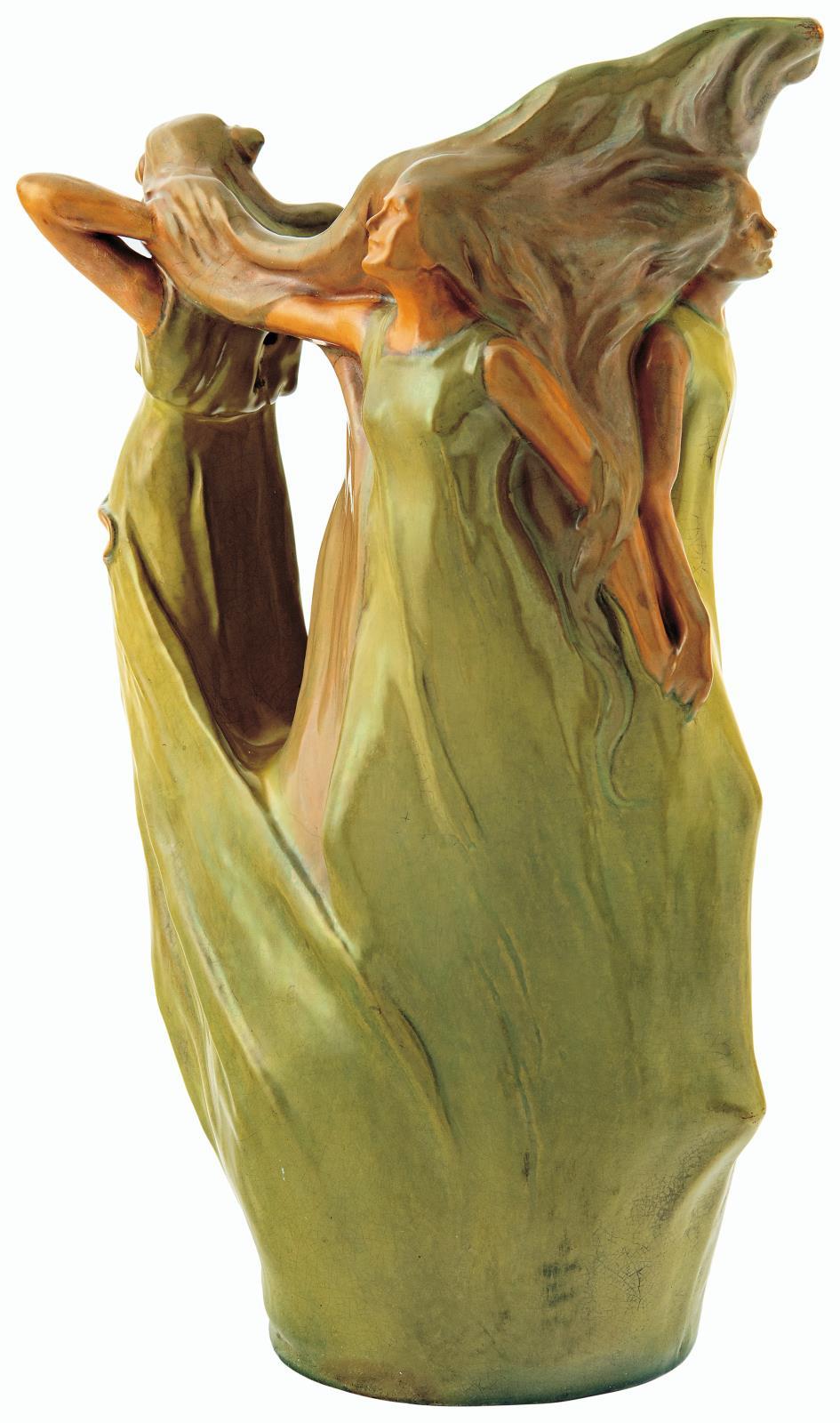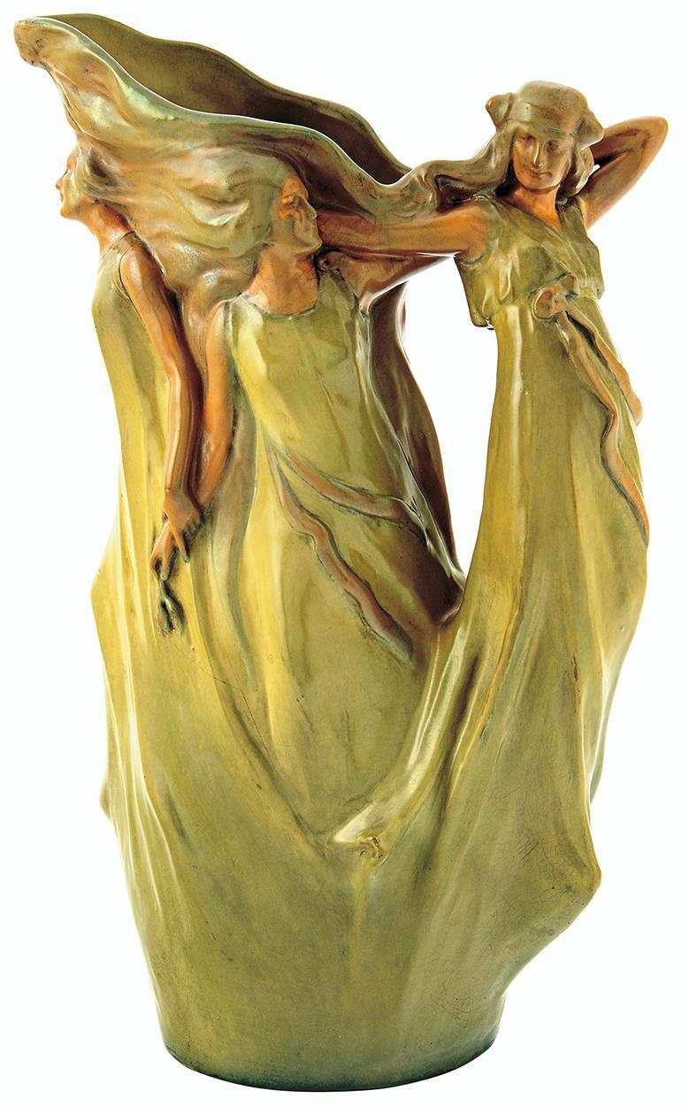 Jug, decorated with dancing girls’ statuettes, Zsolnay, 1903; FORM PLAN BY: APÁTI ABT, SÁNDOR, MACK, LAJOS, 1903