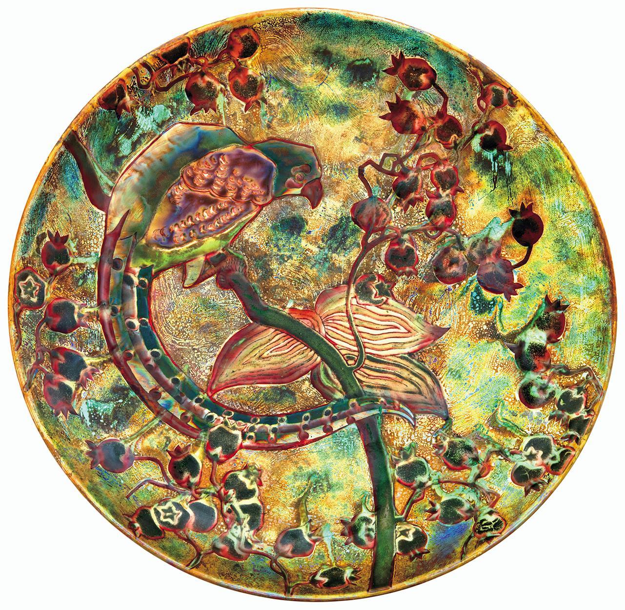 Wall-Plaque with a Bird of Paradise Sitting on a Branch of Medlar, Zsolnay, 1902