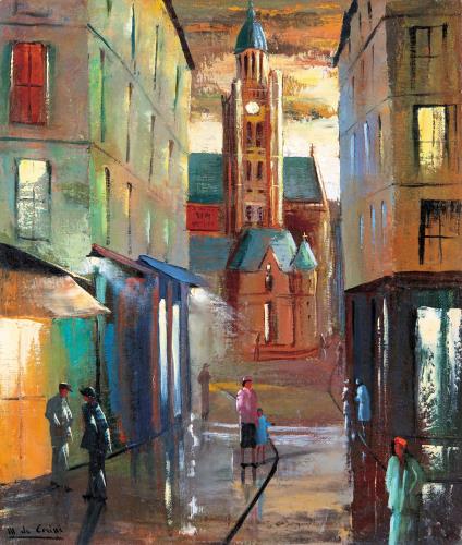 Parisian Street with the Church of Saint-Étienne-du-Mont