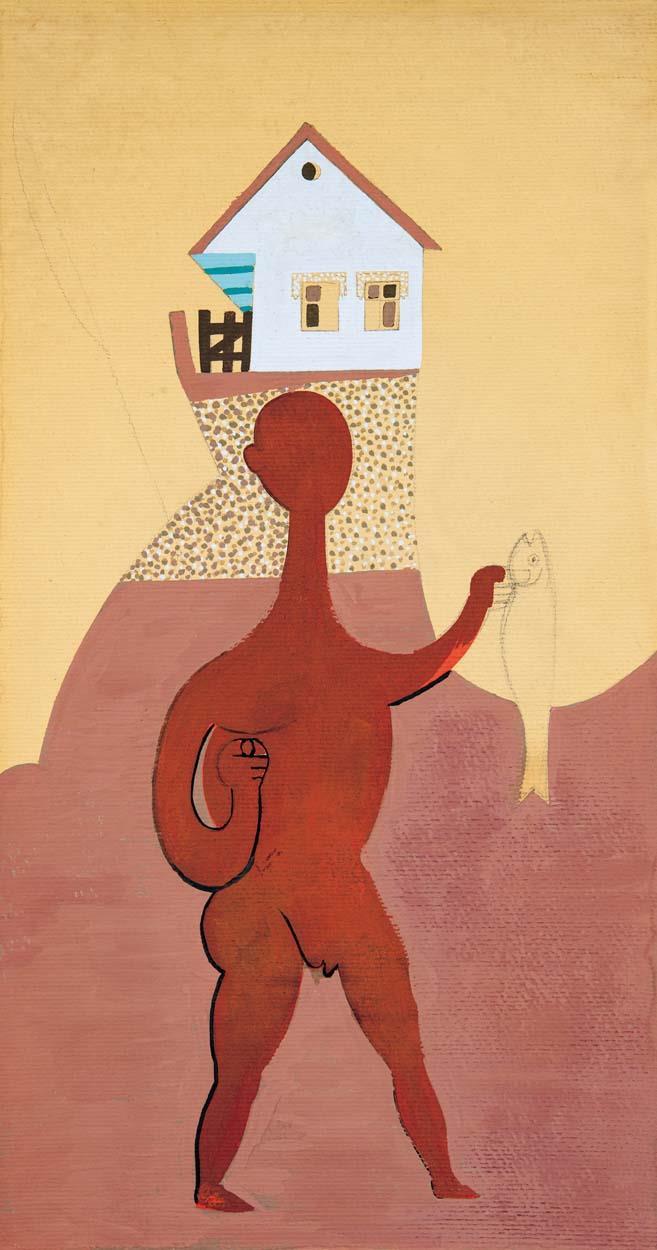 Tempera, pencil on paper