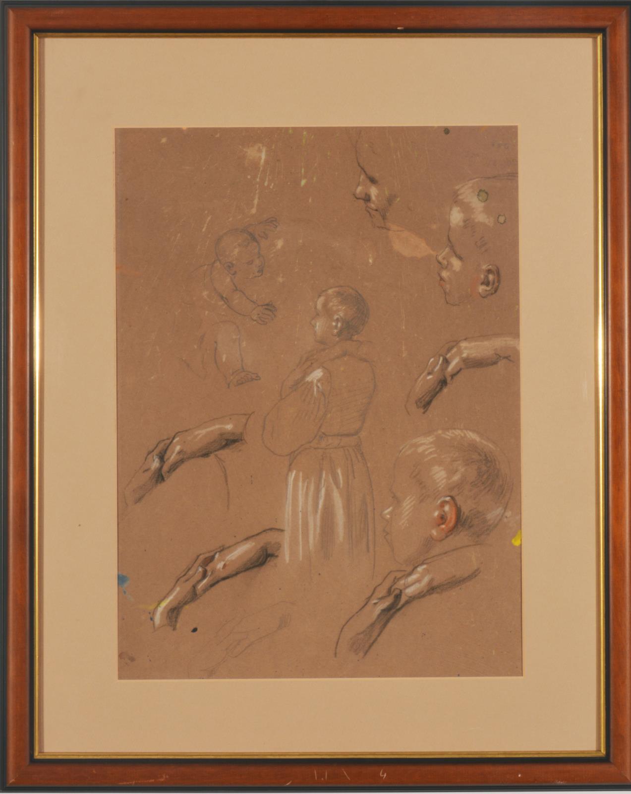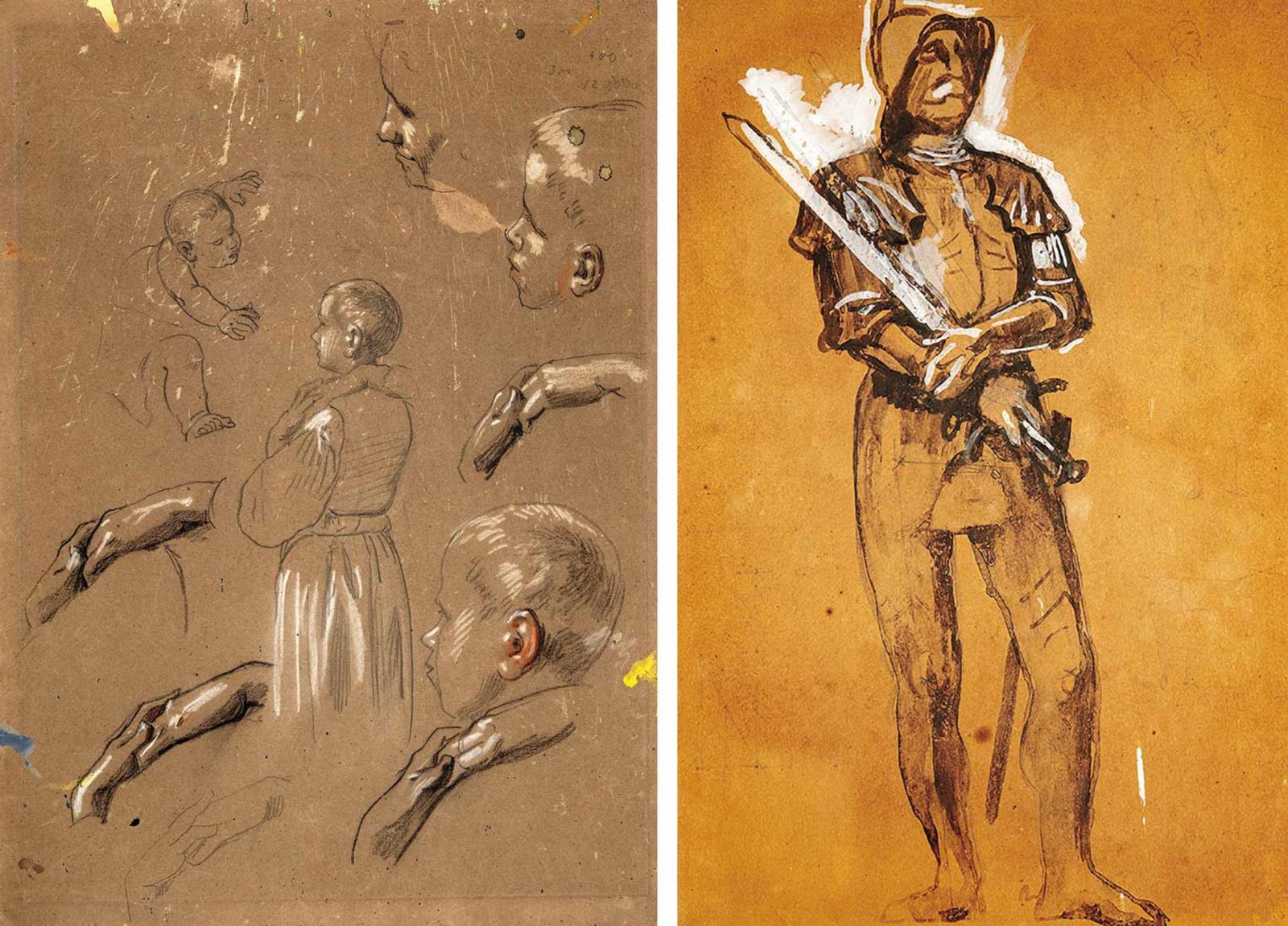 Washed ink, cover white, paper on paperboard / Pencil, white chalk on paper
