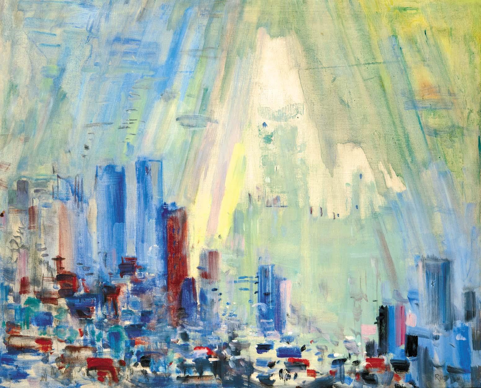 Signed bottom right: Ruzicskay, Autograph inscription on the reverse: Ruzicskay György "Nagyváros"