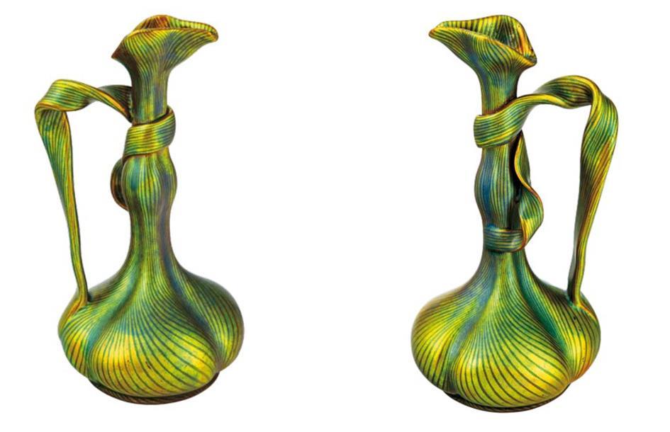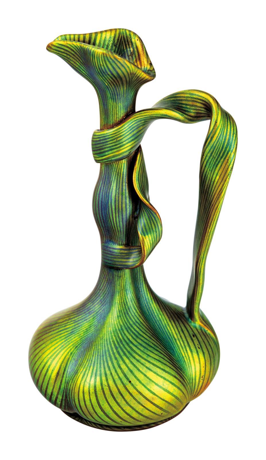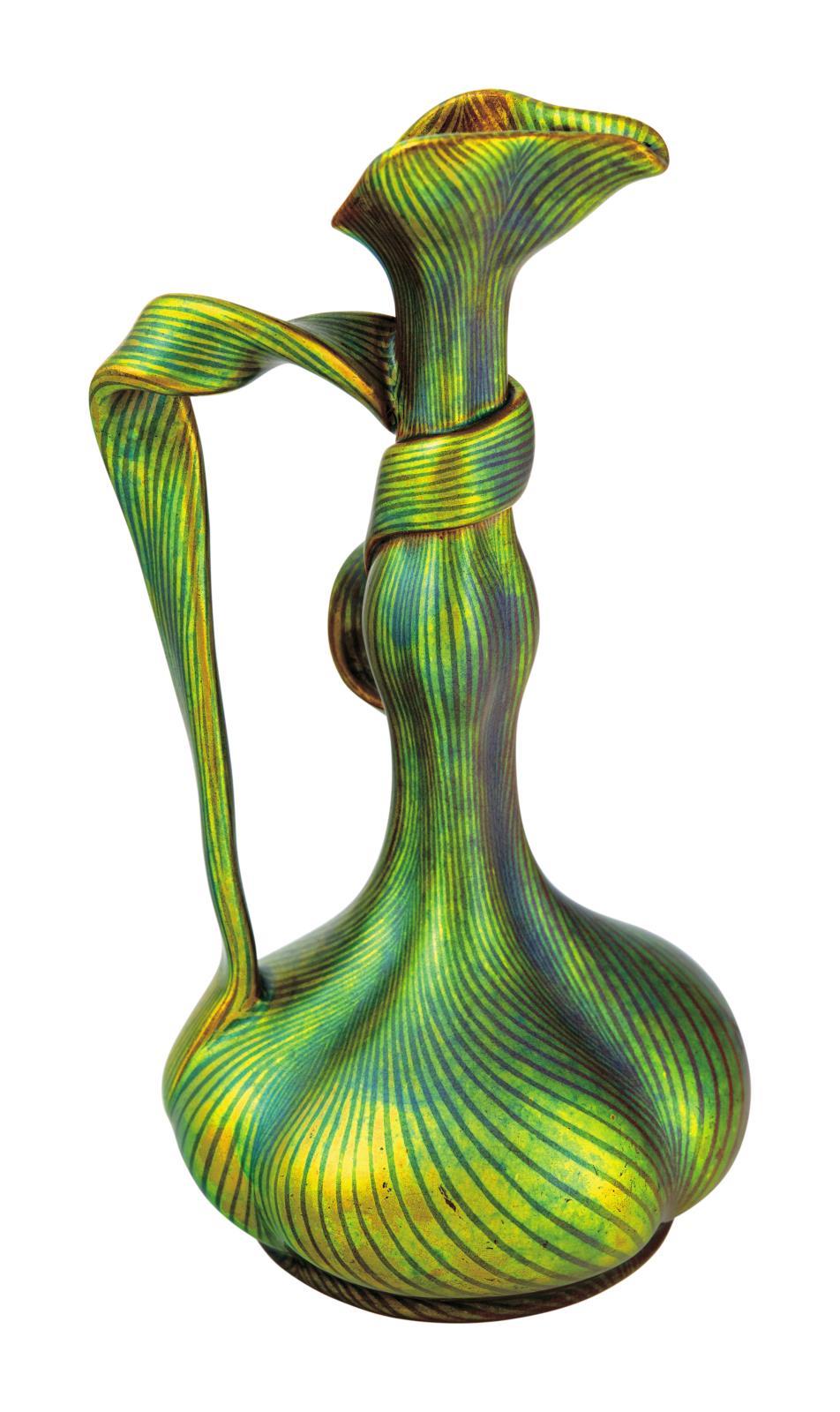 Ribbon-handled Vase with Tiffany-decor, Zsolnay, 1898