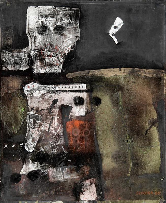 Signed bottom right: Szikora 80, Signed on the reverse: Szikora Tamás „Az éjszaka”