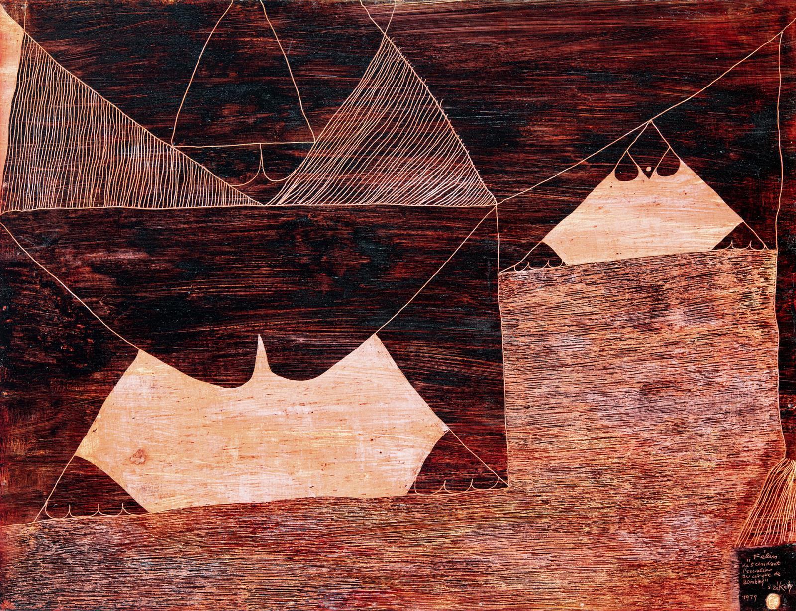 Signed bottom right: "Félin descendant l'escalier au cirque de Bombay" Székely 1979