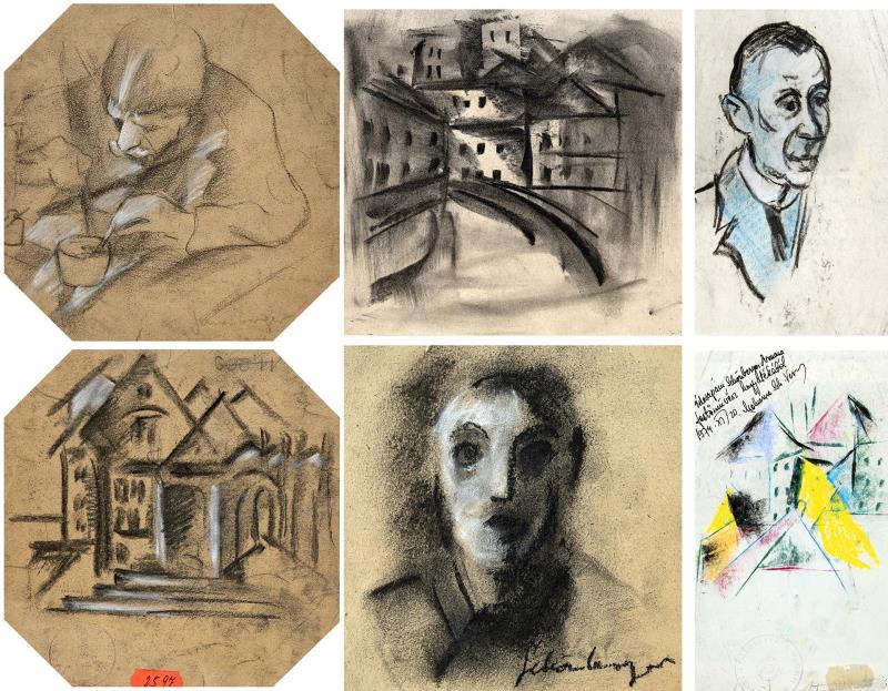 Cityscape, on the reverse: At the Table / Constructive City, on the reverse: Female Portrait / Bridge with Town, on the reverse: Portrait of a Man