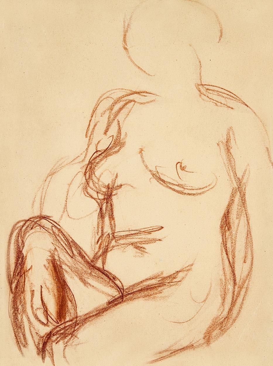 Red chalk on paper