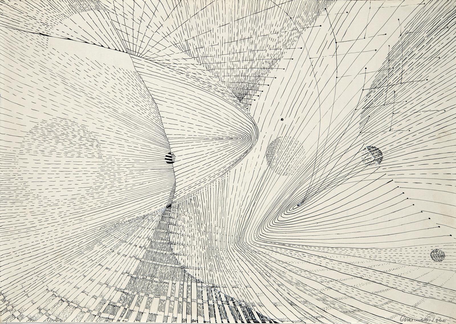 Signed bottom right: Gyarmathy T. 966, Signed on the reverse: Gyarmathy T. 966 R66/68 Katarzis 1966 papír, tus, toll 581 x 432 mm