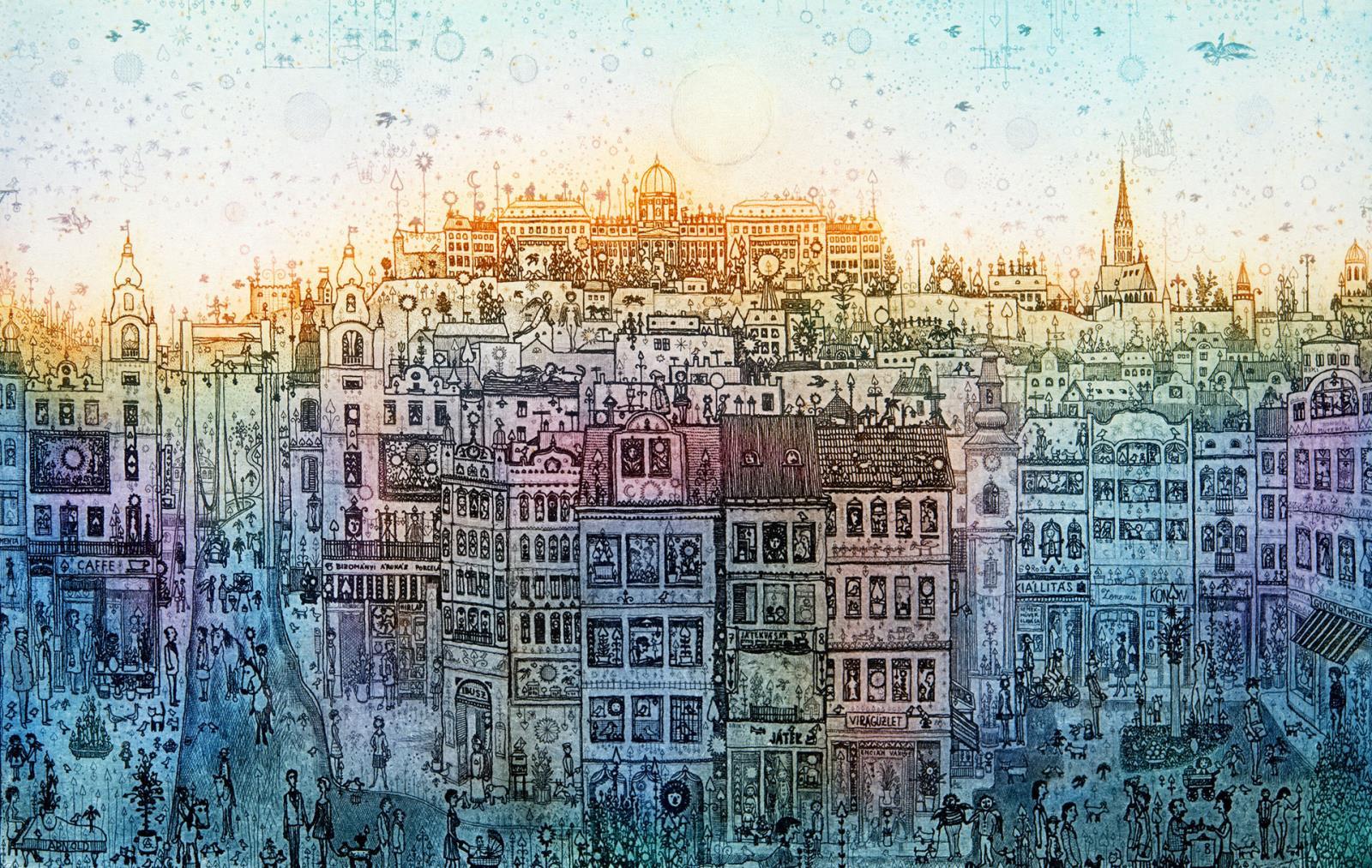 Signed bottom right: Gross Arnold, Signed bottom left: A kék álmok városa, Signed bottom center prb