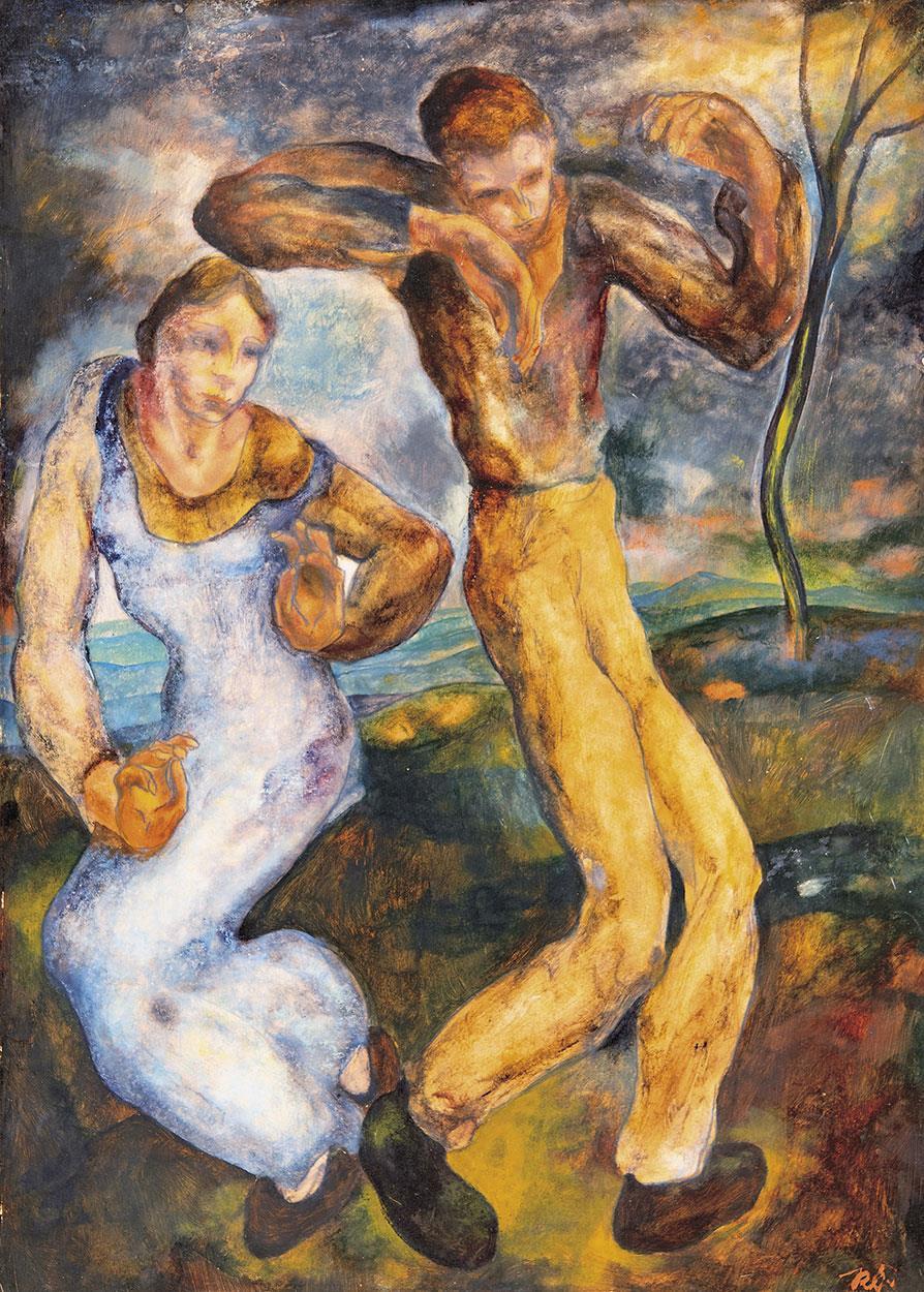 Oil, pastel on cardboard