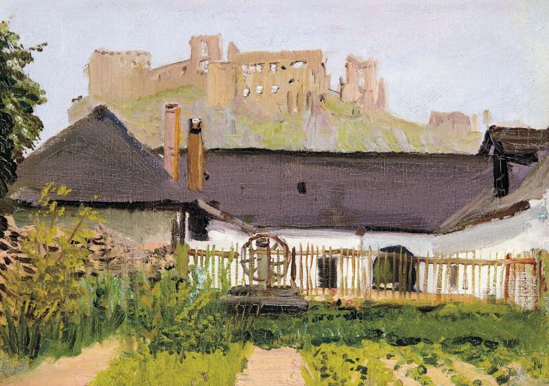 Signed bottom right: Mednyánszky, Signed on the reverse: Beczkó vár udvarán... Legacy stamp
