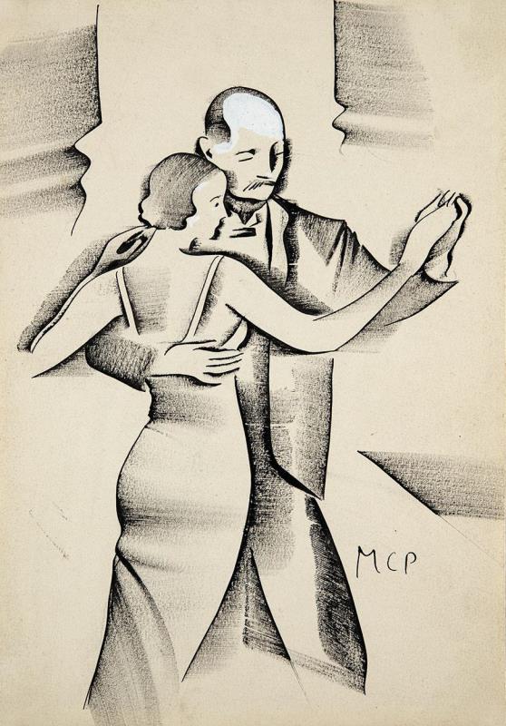 Signed bottom right: MCP, Inscription on the reverse: Kubinyi Ernő: Zöld notesz illusztráció ltsz. 54 Tánc 29x20
