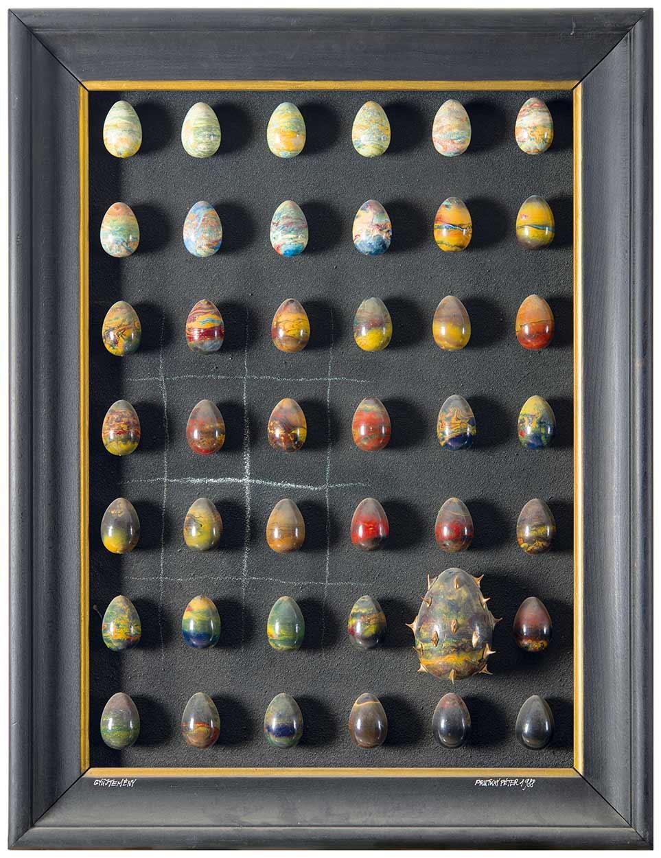 Signed bottom right: Prutkay Péter 1988;Signed bottom left: Gyűjtemény; On the reverse: Tojás gyűjtemény, 1988 Prutkay Péter