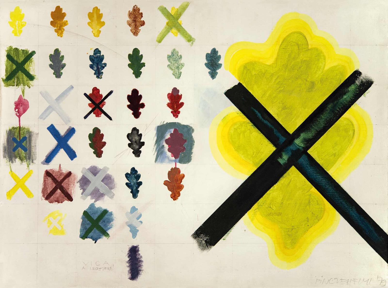 Signed on the stretcher: Pinczehelyi Sándor ( Pécs) O.S. Plener III., 1979; Signed bottom right: Pinczehelyi '79; Signed bottom left: Vica a legszebb!