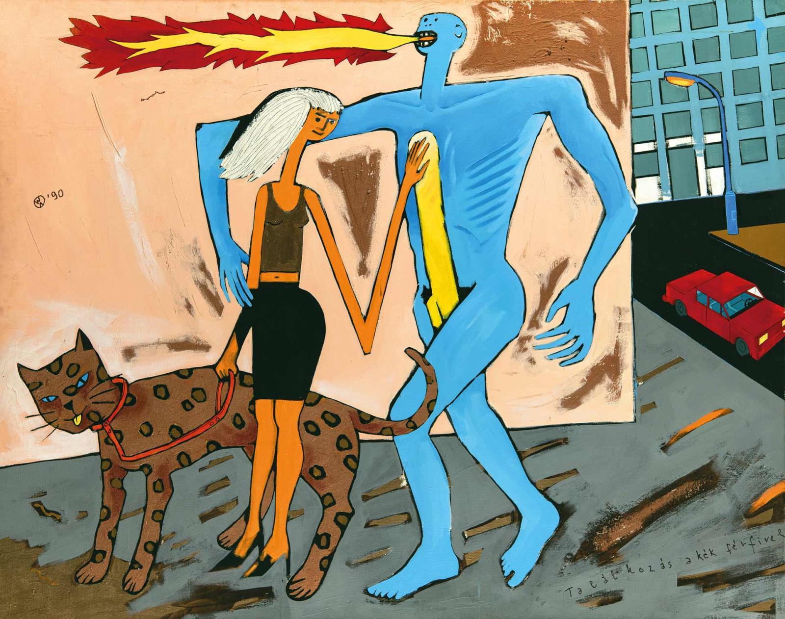 Signed above left: WA '90;Signed bottom right: Találkozás a kék férfivel