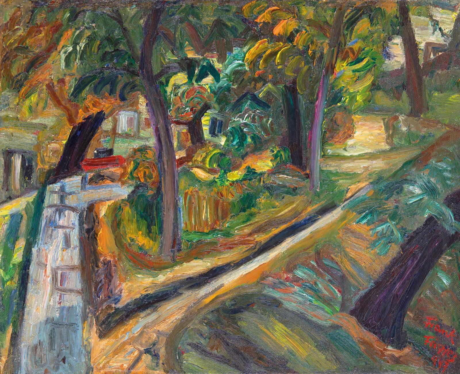 Signed bottom right: Frank Frigyes 947; Signed on the reverse: Városmajor Frank Frigyes 1947; Signed on the stretcher: Frank Frigyes "Városmajor"