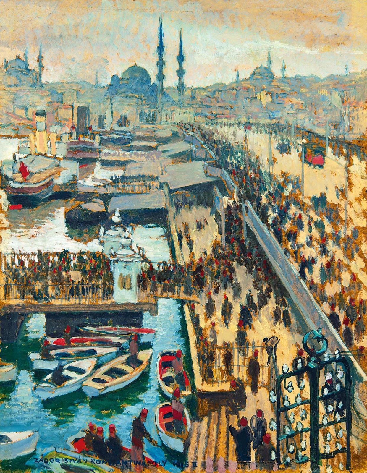 Signed bottom left: Zádor István Konstantinápoly 1916 II, Inscription on the reverse: Die Galata Brücke in Konstantinapol