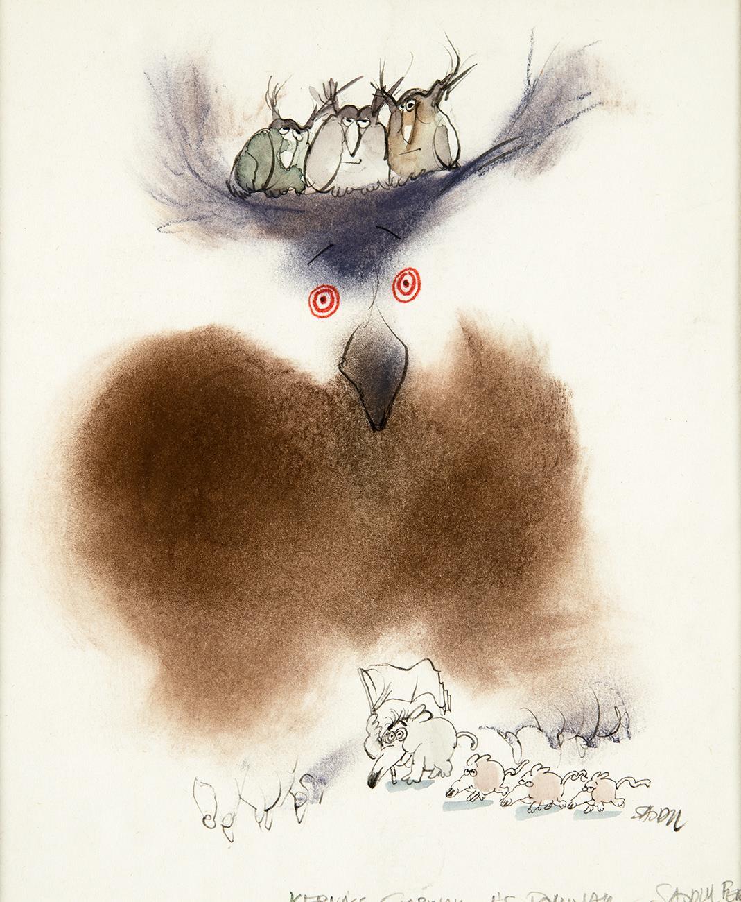 Pen, aquarelle, pastel on paper