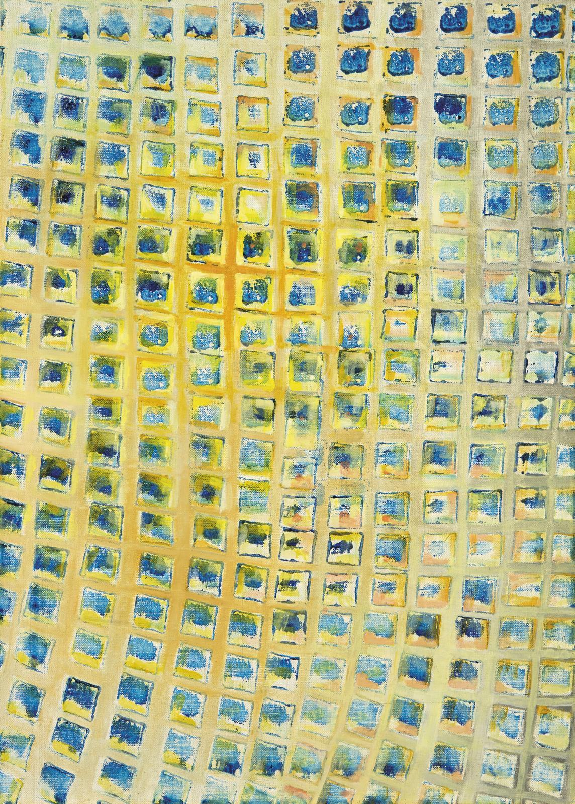 Signed on the reverse: 81/21 Gyarmathy 1981 "Tér variáció" Sárgákban és Consomens színekkel 70 x 50 cm
