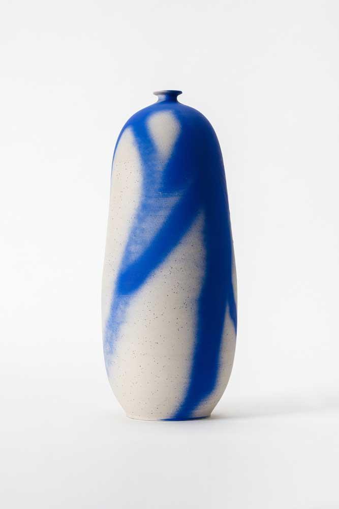 Thrown vase, stoneware clay, transparent glaze, painted with graffiti spray can