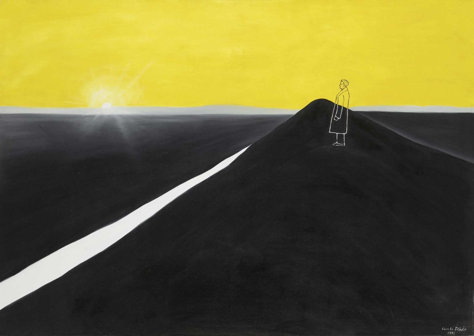 Signed on the reverse: László Fehér Nap, folyó, ember. 1991.