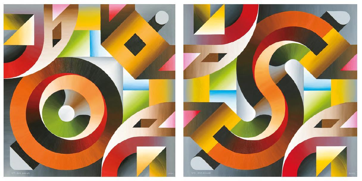 II/1.Signed bottom left: II/1. Sas MiklósSigned bottom right: 2022.;Signed on the reverse: Kétirányú megfelelés II/1 (Diagonális tengelyű szimmetria) Sas Miklós 2022II/2.Signed bottom left: II/2. Sas Miklós;Signed bottom right: 2022.;Signed on the reverse: Kétirányú megfelelés II/. 2. (Centrális szimmetria) Sas Miklós 2022
