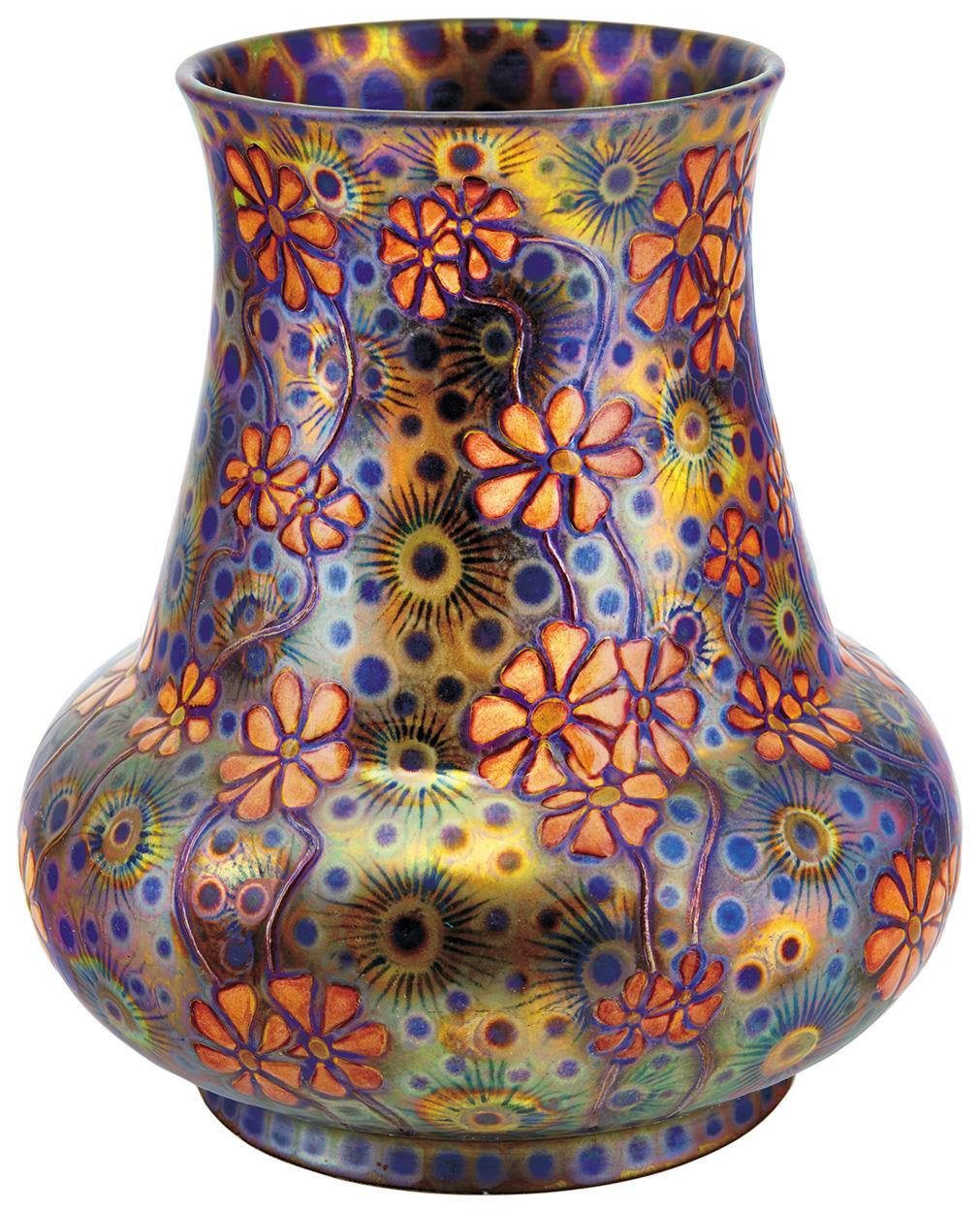 Vase, Decorated with Wild Flowers, Zsolnay, 1902