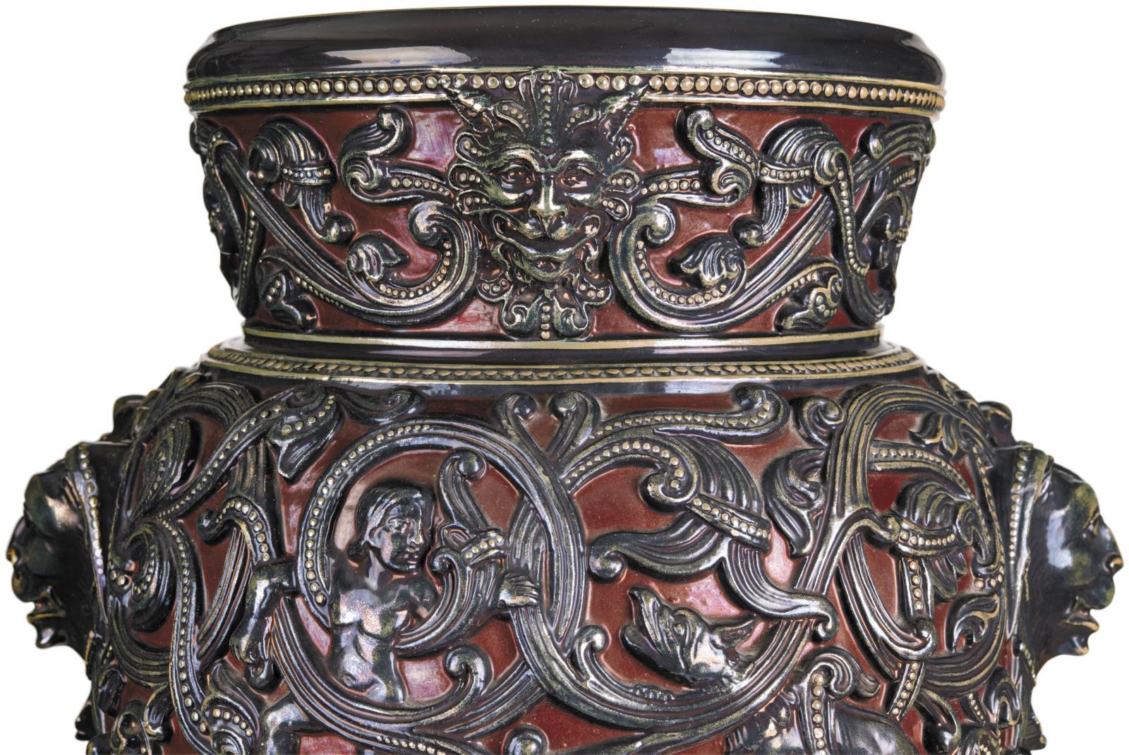 Vase with Roman-style Relief Decoration, Zsolnay, around 1900,, FORM PLAN PRESUMABLY BY: SIKORSKI TÁDÉ, (first version in 1890 IV. - in Old Ivory-series style)