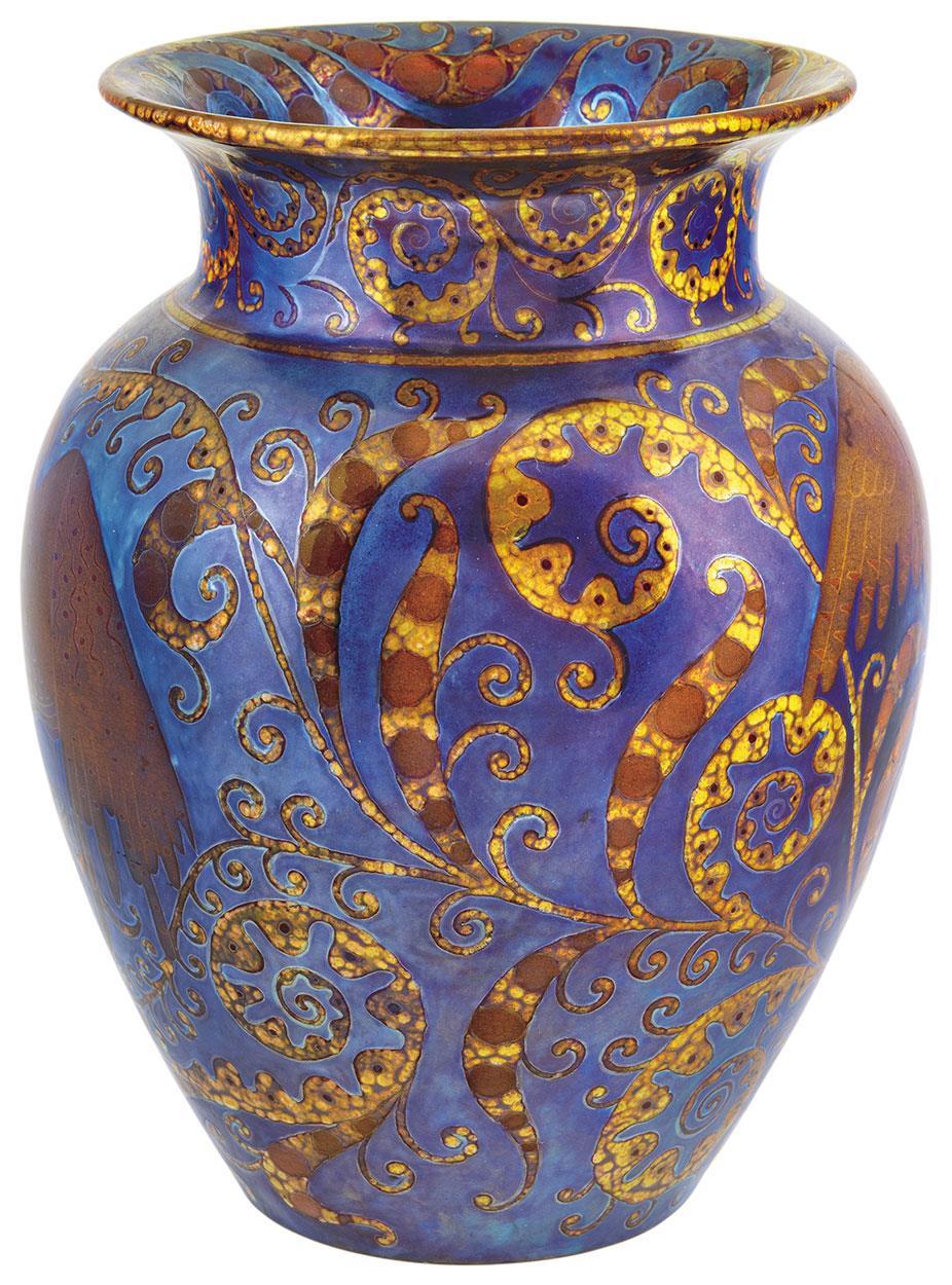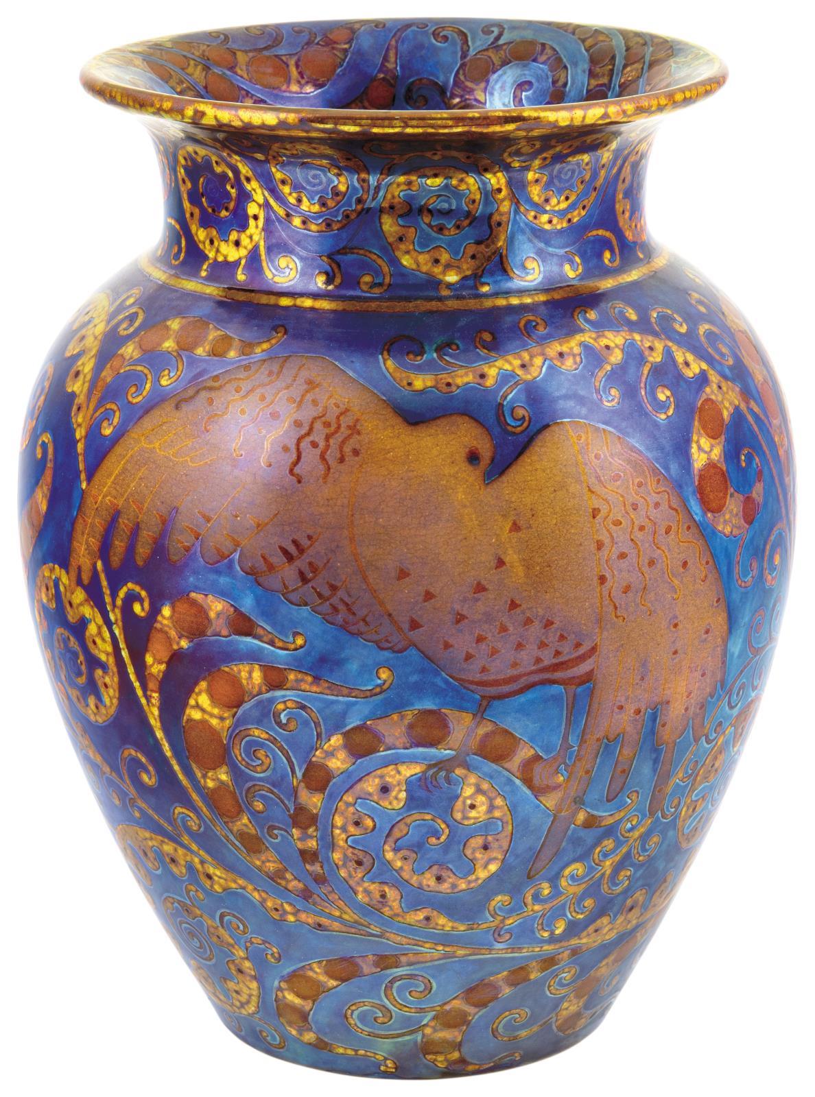 Vase, with Fern Bud and exotic Birds’ ornaments in Art Deco Style, Zsolnay, around 1910