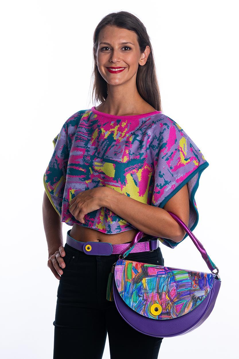 táska 28 × 14 cm, vállpánt hossza 115 cm; pulóver: S/M