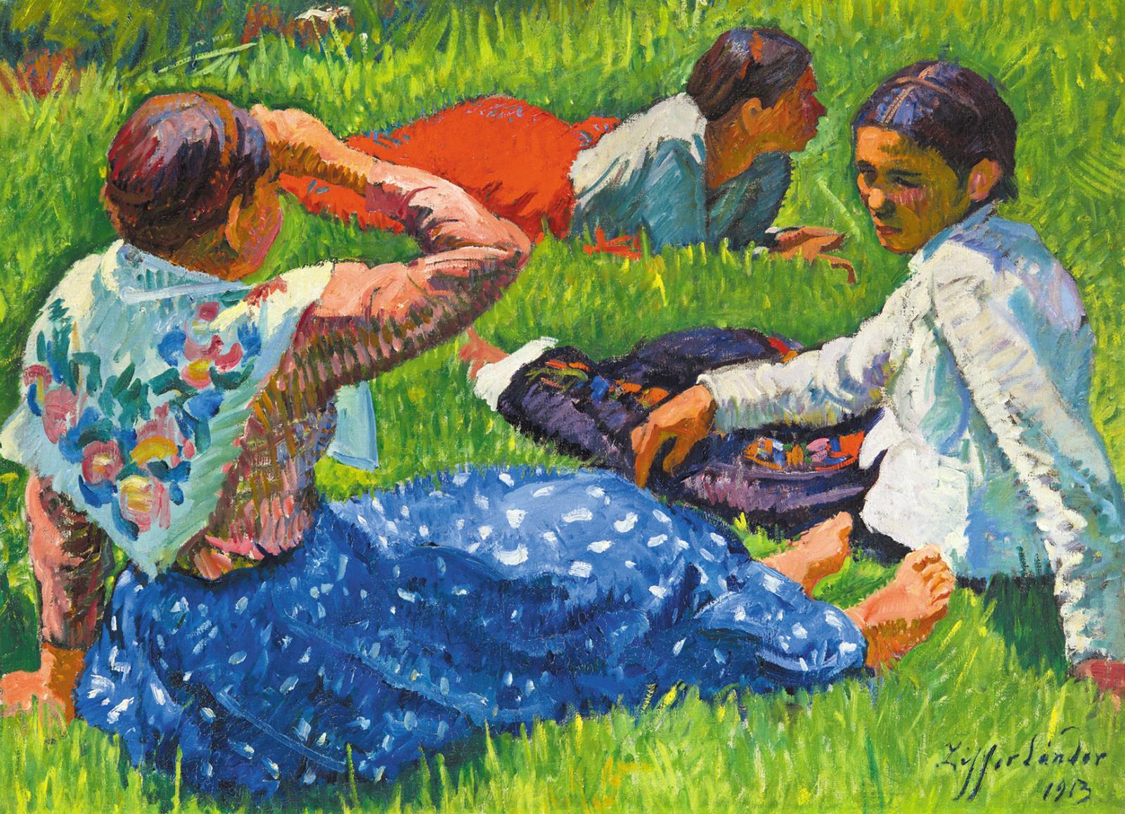 Pihenő modellek (Modelle bei der Rast; Cigánylányok a fűben)