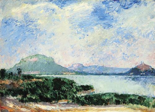 A Felsőhegy és Szigliget látképe Balatongyörök felől, 1920 körül