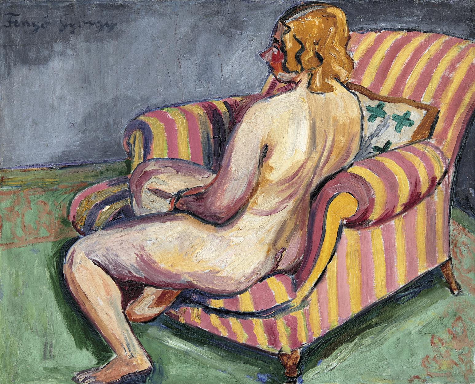 Ülő nő csíkos fotelben, 1938