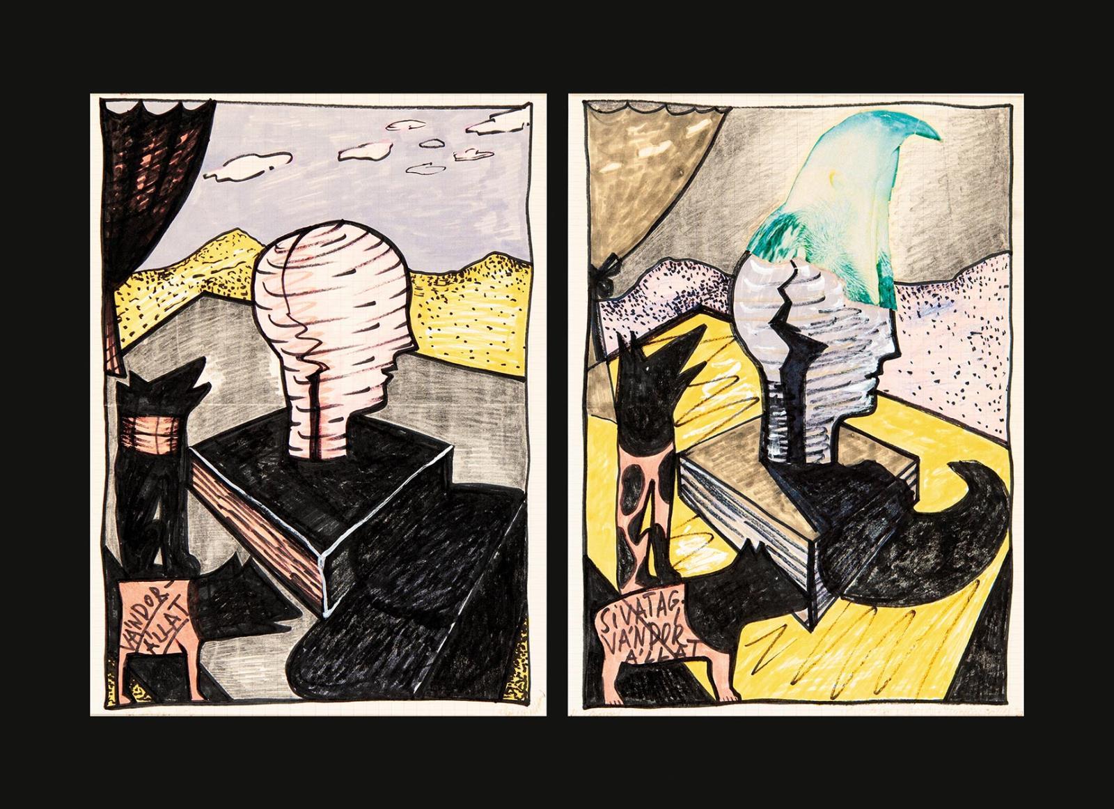 Jelezve jobbra lent: "Állat a színházban" (bal oldali kép)