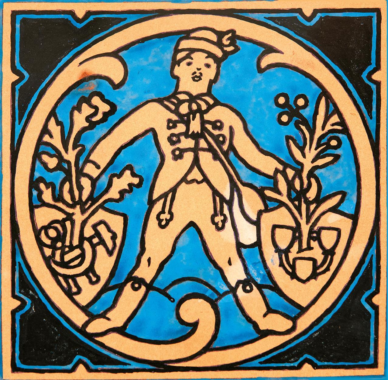 Nikelszky Géza (1877-1966) 15 darab dekorrajz, A ZSOLNAY-GYÁR SZÁMÁRA, A SZABADKAI VÁROSHÁZA LÉPCSŐHÁZÁNAK DEKORÁLÁSÁRA, 1911-1912