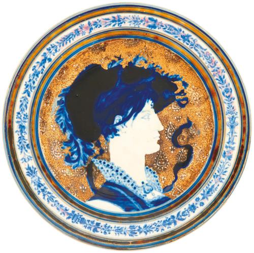 Dísztál, kalapos hölgy portréjával, 1880-1882, DEKORTERV: KLEIN ÁRMIN