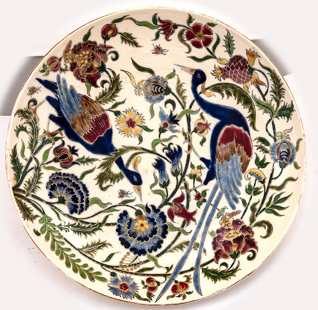 Dísztál, növényi és díszmadaras népi ornamentikával, 1883 körül