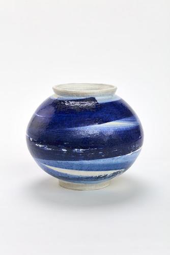 magastűzön égetett, máz alatti kobaltfestett kerámia, kézzel korongozott és festett