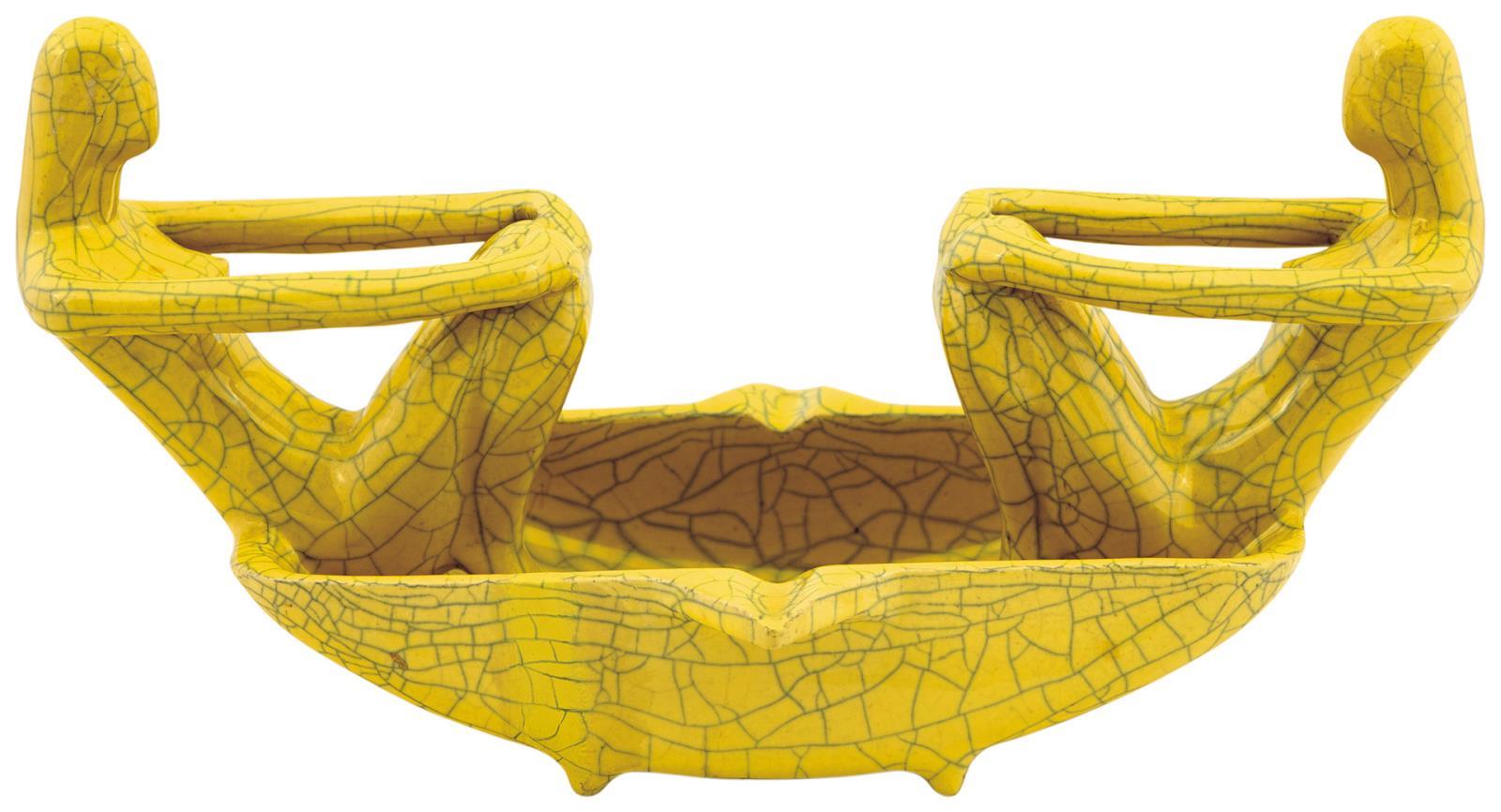 Világossárga, repesztett Bidtel mázas festéssel.