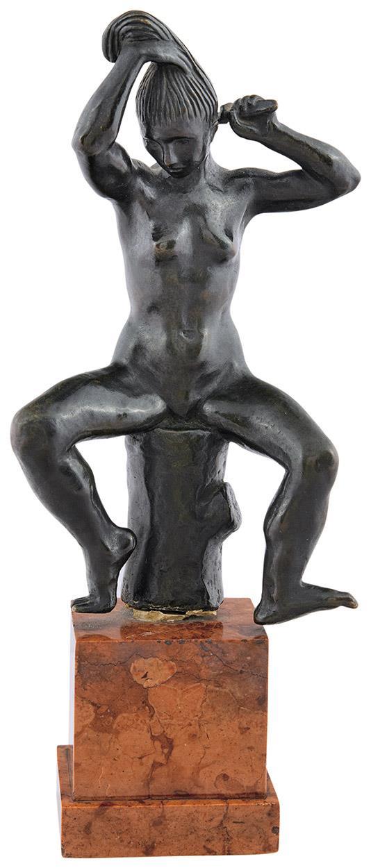 Öntött, patinázott bronz vörösmárvány talapzaton