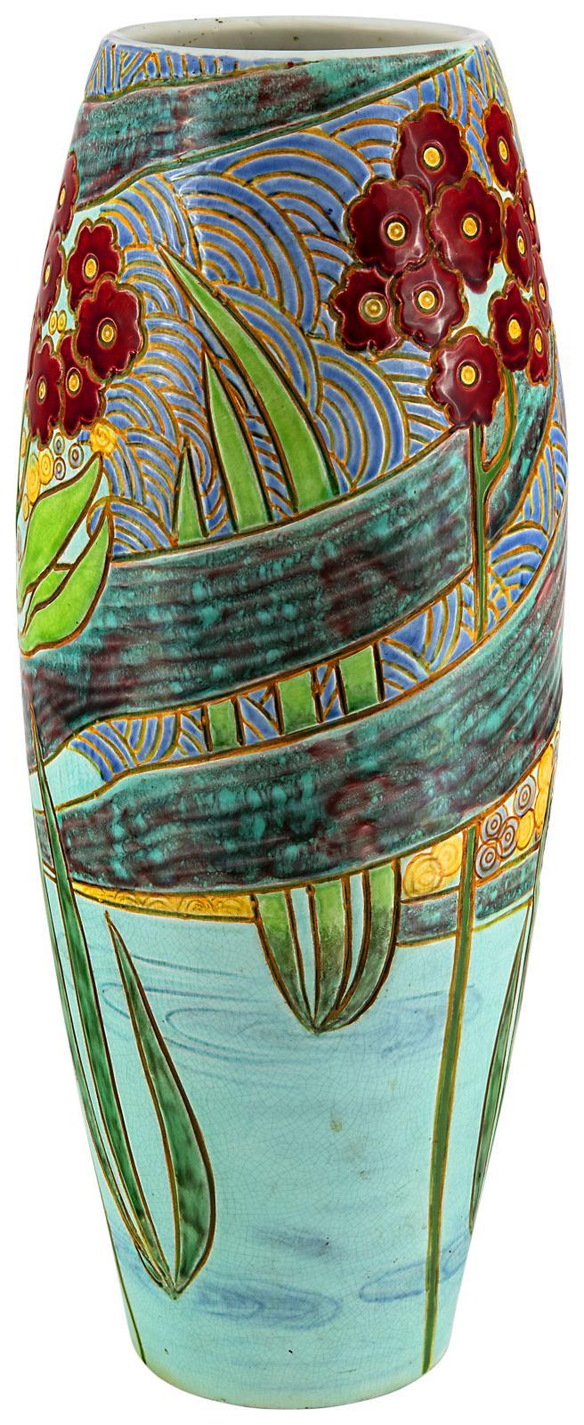 Váza, bevésett vonalrajzos, vízinövényes díszítéssel, 1903, Formaterv: Apáti Abt Sándor