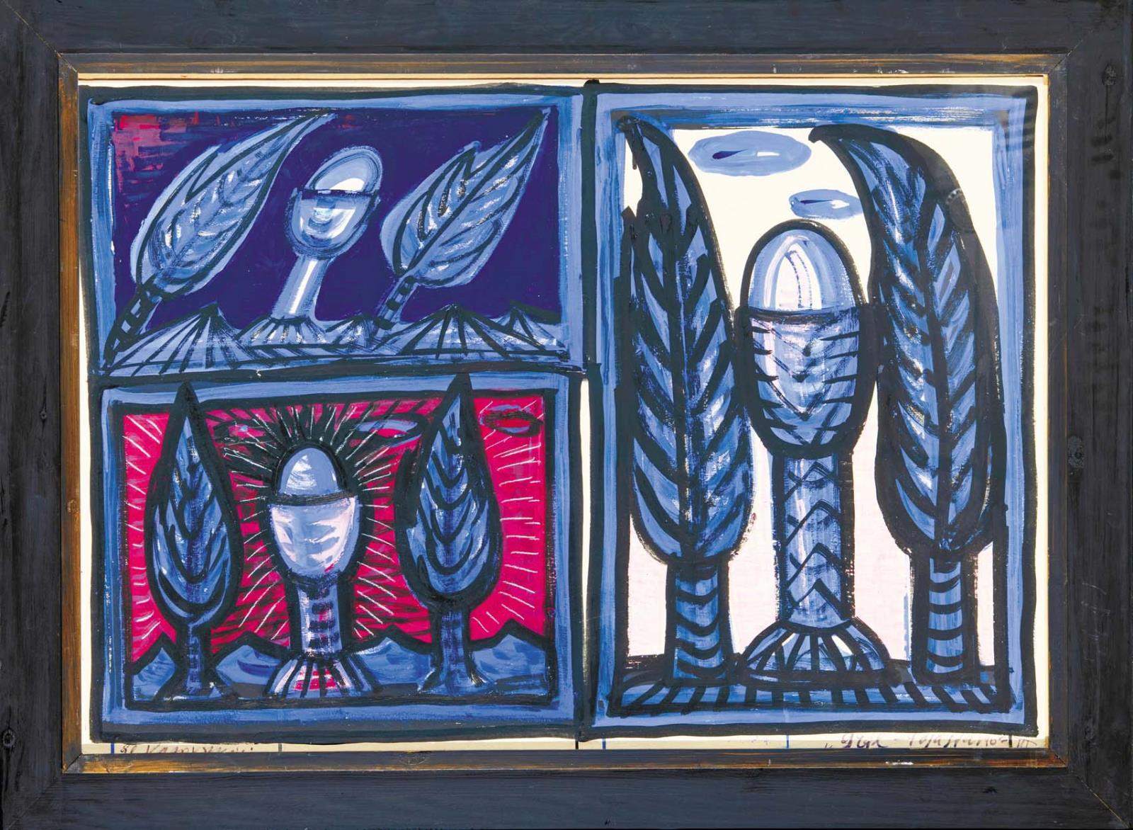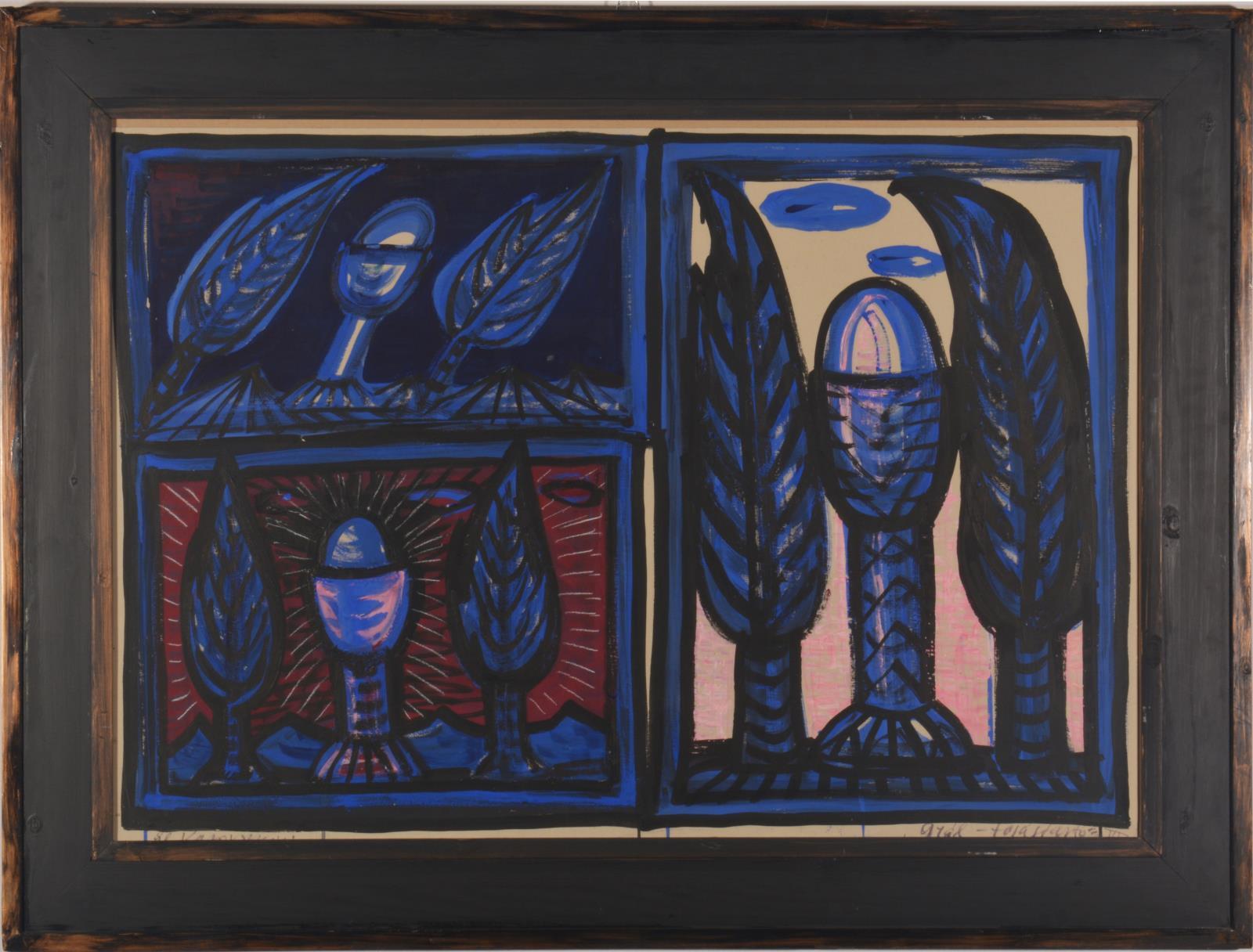 Jelezve balra lent: El Kazovszkij, Jelezve jobbra lent: Signed bottom right: Grál - tojástartó III.