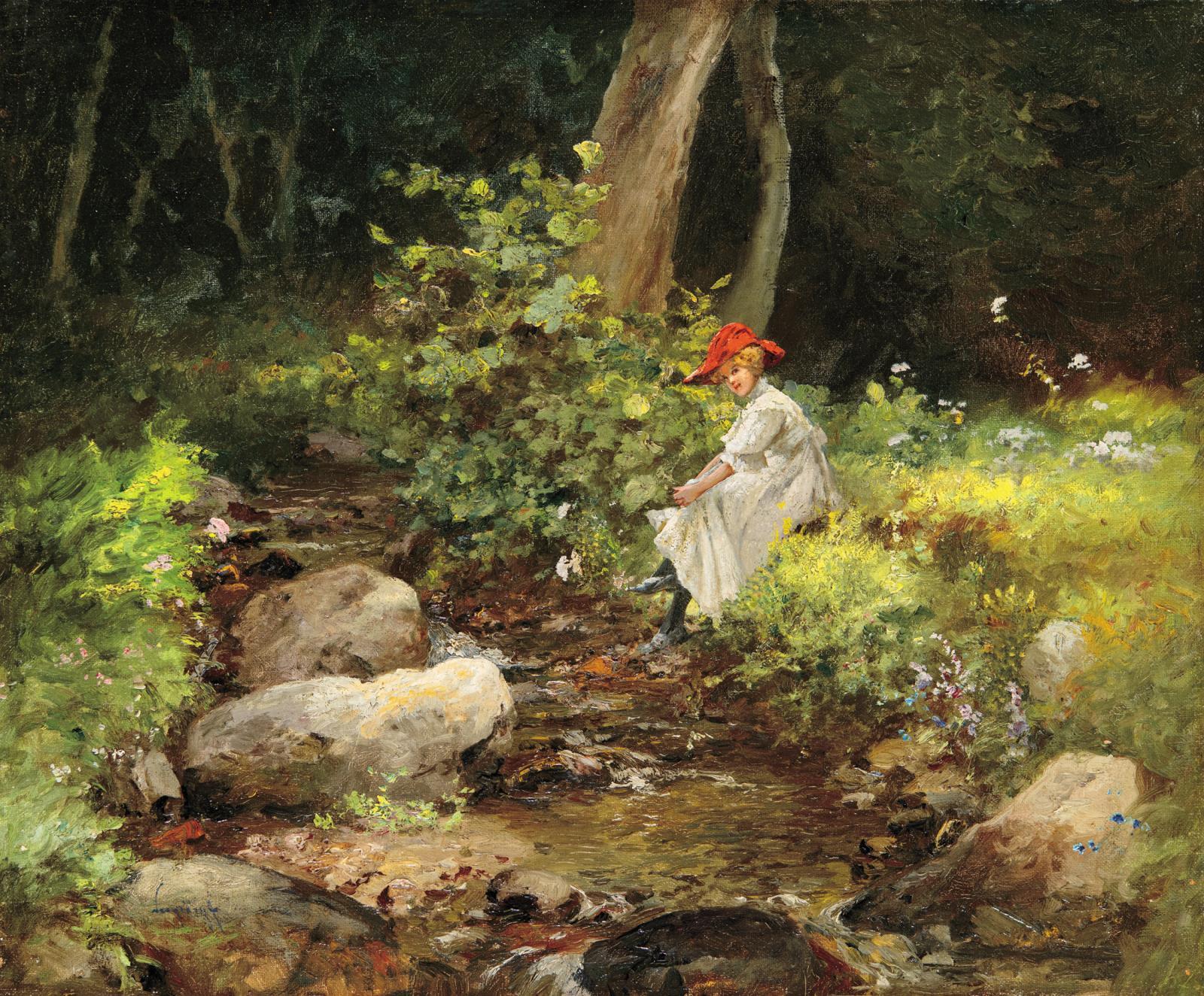 Lány a patakparton