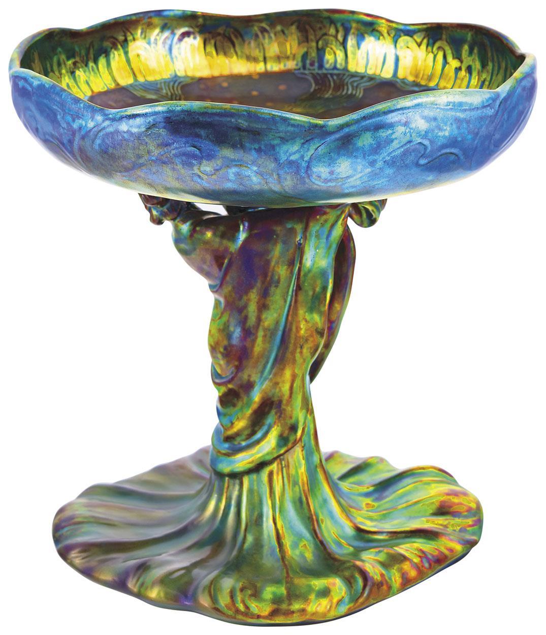 Talpas tál nőalakot formázó talapzattal, Zsolnay, 1898 körül Formaterv: Mack Lajos