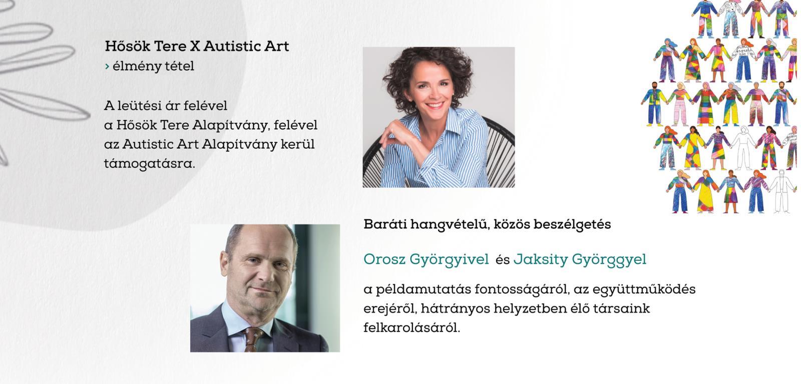 Beszélgess barátilag Orosz Györgyivel és Jaksity Györggyel. Tudod, miért vagyunk közönyösek? És miért érdemes felvállalni egy társadalmi ügyet? Tölts egy órát barátaiddal (max. 6 fő) a Hősök Tere Alapítvány- és az Autistic Art Alapítvány alapítójával