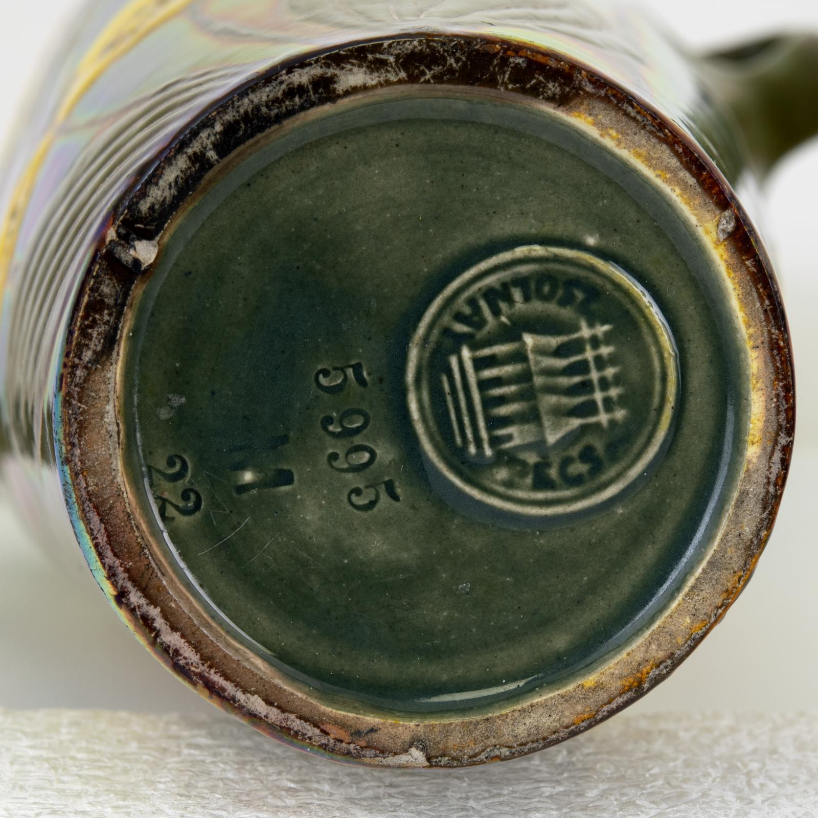 Váza, két füllel, sárga virágú növény-díszítménnyel, Zsolnay, 1900