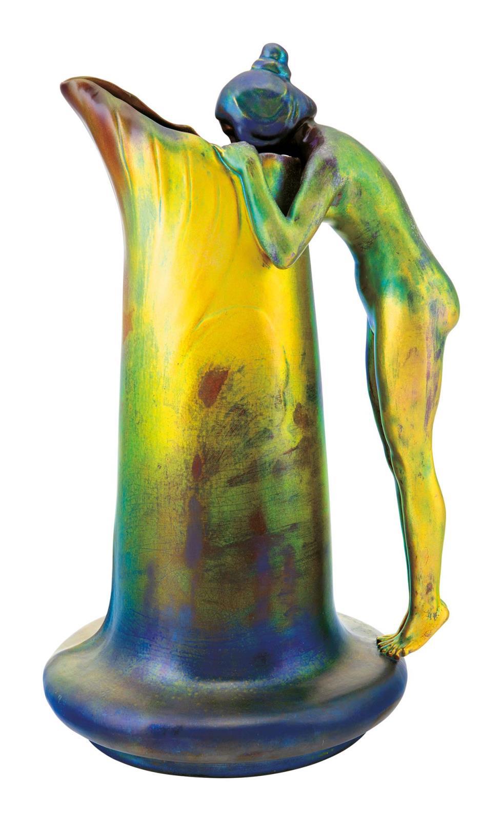 Kancsó, forrásból ivó nőalakkal Zsolnay, 1900 körül