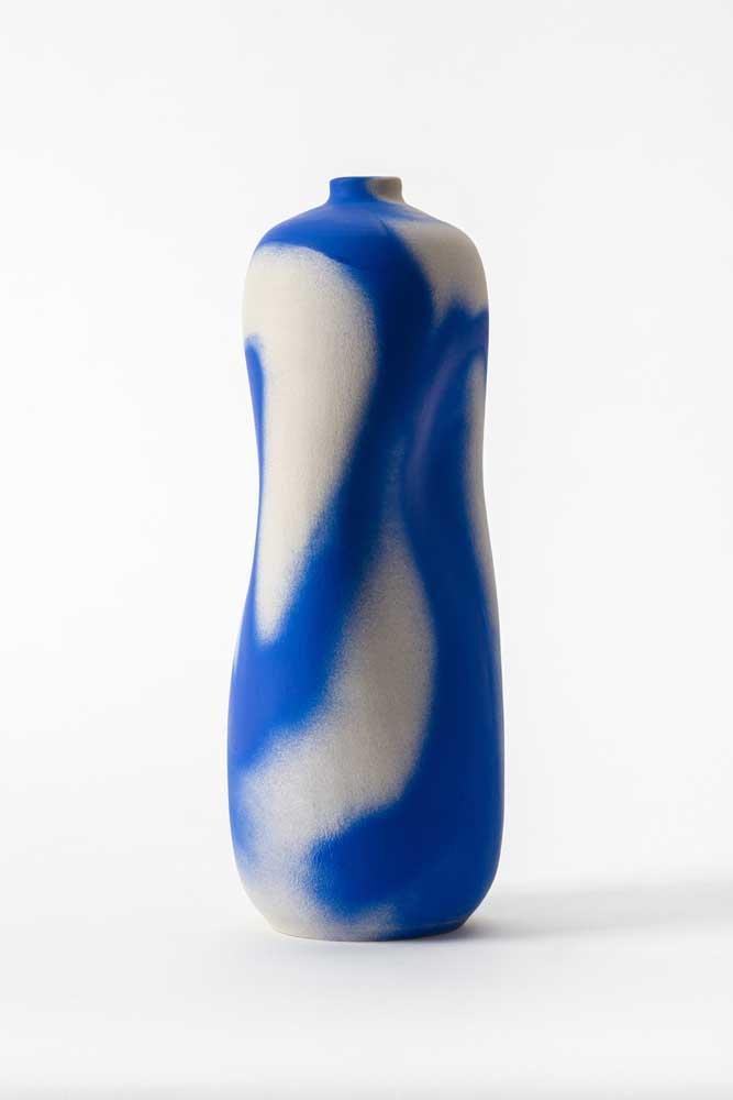 korongozott váza, magastűzű agyag, transzparens máz, graffiti festékkel fújva